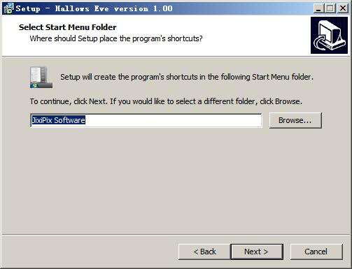 3、选择开始菜单文件夹名称,默认为“JixiPix Software”