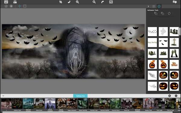 令人毛骨悚然的照片色调,以及移动、旋转和缩放混合和匹配万圣节对象库的能力。