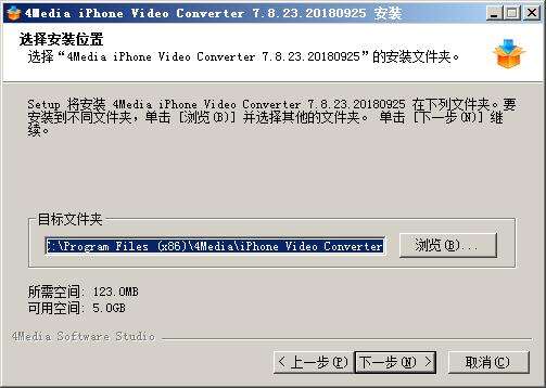 5、选择软件安装位置,默认为“C:Program Files (x86)4MediaiPhone Video Converter”继续下一步