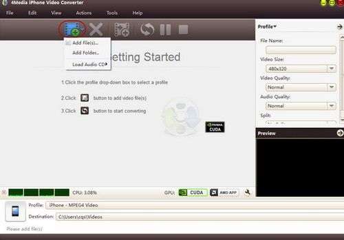 作为专业的iPhone音乐转换器,4Media iPhone视频转换器还可以将WMA,MP2,OGG,RA,AC3,APE和CDA之类的音频转换为MP3,WAV和AAC之类的iPhone音乐文件。
