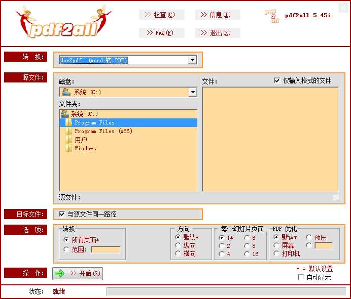 pdf2all官方版是一款专业多功能的转换器集合工具。pdf2all最新版可以对各种不同格式文件与 PDF 文档间进行转换。pdf2all官方版还能转换包括 doc2pdf (Word 转为 PDF)、xls2pdf (Excel Sheet 转为 PDF)、ppt2pdf (PowerPoint 转为 PDF)、mdb2pdf (Access 转为 PDF等格式。