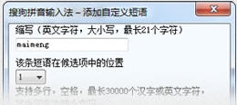 从属性——高级——自定义短语——添加新定义,进行设置,“maimeng=o 'w' o”,即可