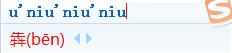 输入“u”和汉子的偏旁部首就可以,例如“犇”,只要拼写“uniuniuniu”;对于无法拆分的字,输入u和汉子笔顺,例如“朩”,输入“uhspn”,意思是u横竖撇捺即可。