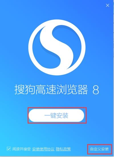 2、双击打开“sogouexplorer85.exe”文件,看到搜狗浏览器的安装界面,用户可以点击“一键安装”按钮选择系统默认的安装地址进行安装,也可以点击“自定义”自主选择安装路径,这里小编推荐自定义安装。