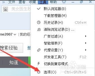 1)、如果用户觉得这两种都不能彻更换,那么可以点击搜狗浏览器最上方的“工具”选项,在弹出的下拉列表中选择“选项”。