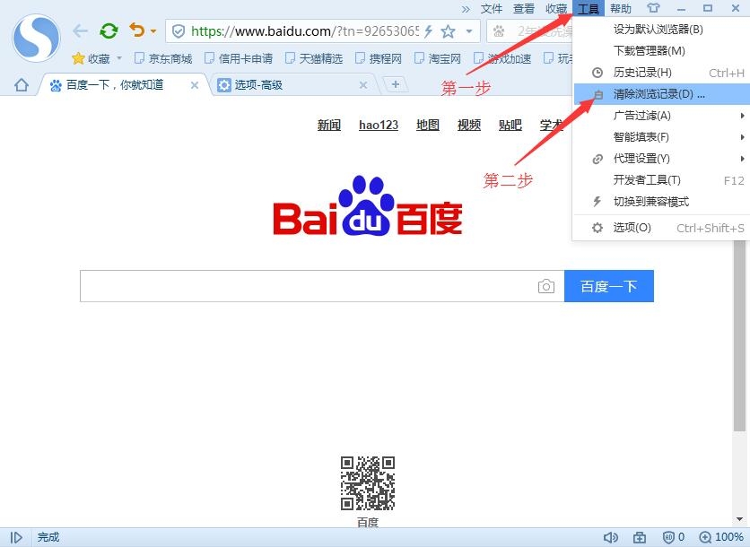 1、首先需要打开搜狗浏览器的主界面,然后点击上方的“工具”选项,然后在下拉的列表中,选择“清除浏览记录”,进行下一步。