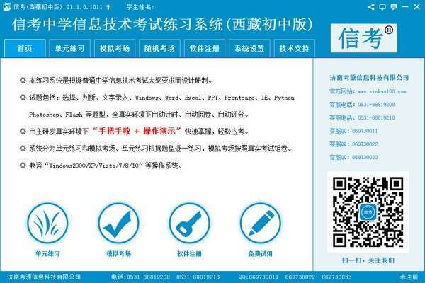 信考中学信息技术考试练习系统浙江杭州初中版软件功能强大,专业实用,根据普通中学信息技术考试大纲要求设计,相同的考试环境,相同的考试问题类型,自动计时评分,培养学生对各学科信息的综合处理和创新能力,