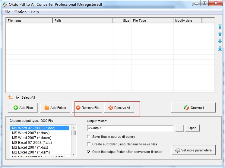 此外,您可以从列表中删除文件或清除整个工作区并指定处理文档的顺序。您可以将转换列表保存到计算机上的文件中,以便将来导入它并设置输出文件名。