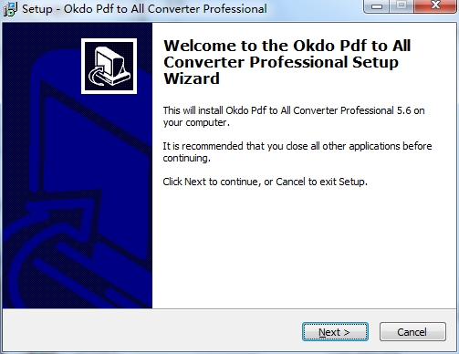 1、在本站下载完成之后解压成功,点击okdo-pdf-to-all-converter-professional.exe运行软件;