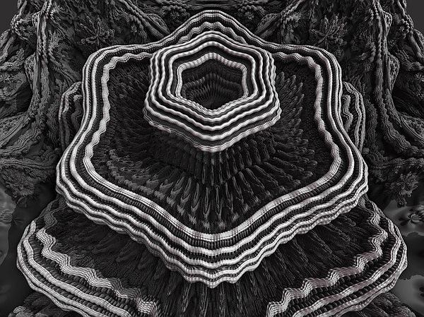 1.定义分形对象(或许多对象)。为动画动画创建一个具有有趣特征的分形图(例如,有趣的形状,几何结构,纹理,颜色,可能是相机可以导航到的孔)。建议选择渲染速度相对较快的分形对象。使用低分辨率的快速渲染分形,导致导航和飞行路径记录几乎实时(或慢动作)发生。快速渲染分形也将提高最终帧渲染过程的速度。