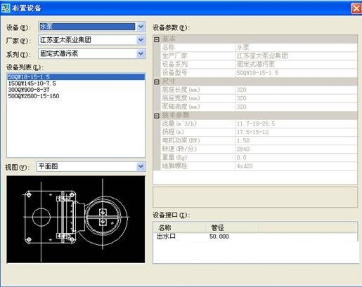 5、在软件中,平面设备、剖面设备的布置有两种方式:“布置设备”命令布置和工具面板或菜单上固定类型的设备图形绘制。这两种方式的差别在于,“布置设备”生成的图形具有设备数据库中的完整信息,平面图可以自动与双线管道连接,工具面板中只是布置简单图块,不包含专业信息。