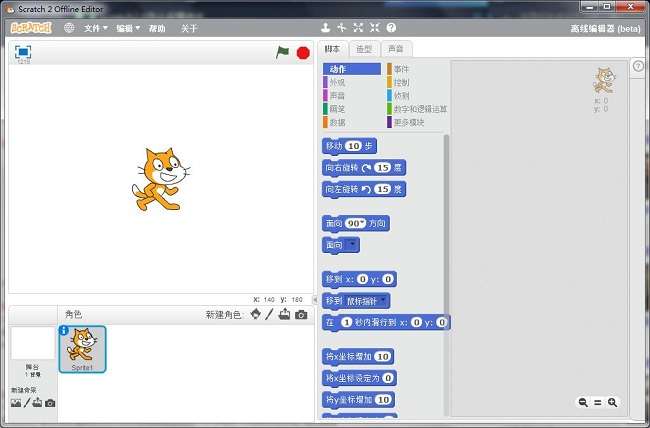 scratch2.0离线中文版是一款十分好用的儿童编程软件,由麻省理工学院推出,界面清爽简约、操作简单易上手。采用java语言构建,帮助孩子实现游戏和动画的制作。本版本是离线版,无需安装,点击就能使用。有需要的朋友赶紧来下载体验吧!