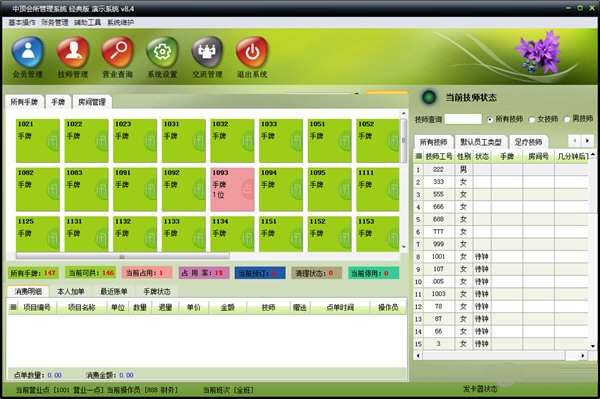 系统界面简洁优美,操作直观简单,无需专门培训即可正常使用。适用于洗浴中心、高档会所、美容院、SPA俊颜馆、保健按摩、足浴、娱乐等以手牌和房管理为主的信息化管理场所。