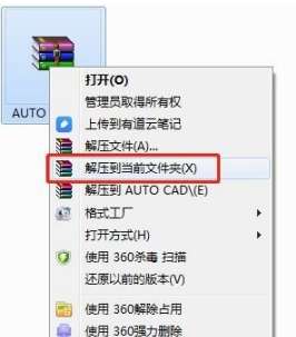 首先,选中需要移除密码的压缩包,右键单击,弹出快捷菜单,选择“解压到当前文件夹。”