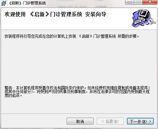 3.双击打开,进入启新门诊管理系统软件界面,点击下一步