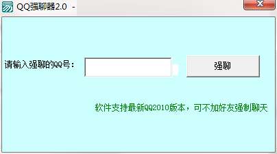 QQ强制聊天器(QQ强聊器)电脑版是款专门针对QQ打在的强制聊天工具。QQ强制聊天器(QQ强聊器)正式版可以帮助QQ用户进行强制QQ聊天,无需加对方好友,无需对方同意,你只需要输入对方QQ号就可以进行强制聊天了。QQ强制聊天器(QQ强聊器)即使他把你从QQ好友列表中删除了,也照样能与他对话。