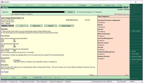 先进的远程功能,具有自定义选项众多共同构成Tally.ERP 9一个强大的工具,可以保持一个中等规模的公司的所有方面的轨道。无论一个企业主的需求,Tally.ERP 9可以上升到他们的期望,提供工具进行有效的资源规划和日常经营管理工作。