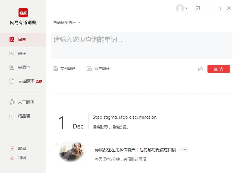 3、想要使用有道词典的全部功能的话同样可以点击悬浮窗口中的“回到主窗口”正常使用软件的全部功能