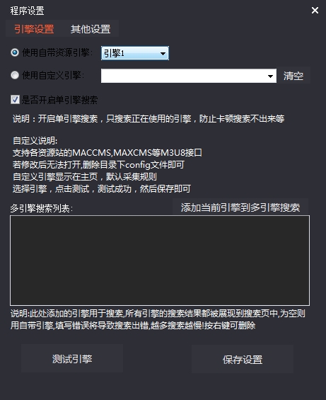 除了自带的引擎之外,选择 使用自定义引擎 选项 然后在后面编辑框里填写引擎地址 然后点击 测试引擎 成功后保存就可以啦
