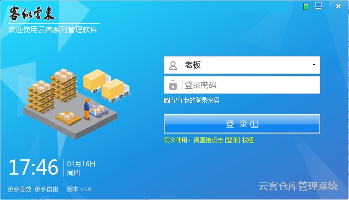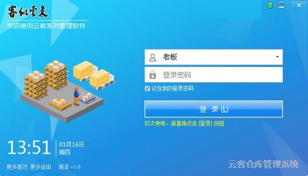小编推荐:云客仓库管理系统一直以来是大多数网民的常用管理工具,其在网民心目中的霸主地位可见一般,强烈推荐广大用户下载云客仓库管理系统使用,快来PC下载网下载吧,另外还有金蝶智慧记破解版、光速搜索、人事管理系统、fbinsttool、discovery下载提供下载。