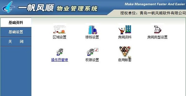 一帆风顺物业管理软件官方版是一款物业综合管理软件。一帆风顺物业管理软件官方版包含了区域设置、楼栋设置、房间资料、房间类型设置、操作员管理、权限设置、启用套帐、费用项目、打印格式、房间状态以及单价项目等主要功能。一帆风顺物业管理软件可以随时备份系统中的重要数据。
