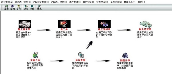 金骏摩托车维修配件管理系统是一套专业的摩托车维修管理软件,具有专门针对摩托车流程管理的管理软件(包括摩托车配件、摩托车维修、摩托车养护等);包括的管理流程(摩托车维修管理、摩托车配件管理、客户跟踪管理),功能模块包括接车、施工、领料、退料、审核、结算(包括正单、副单)、返工、作废、客户跟踪、流失、新增、客户等级自动评定、车牌统计、维修员工资提成、汽车维护保养、保险跟踪、年审跟踪、季审跟踪、换机油跟踪、零件进货、零件销售、零件领用、零件退货、零件预定、零件借用、零件销售提成工资、业务员零件销售排行榜、零件销售排行榜、经营日报表、经营状况表、月结盘点表等综合报表统计提供一系列的优胜服务。接车单和结算单均提供多样化的打印格式,基础资料提供导入与导出功能、数据库备份与恢复、数据清空功能、并提供软件程序自动升级功能,还可将所有单据导出Excel。
