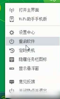 第一种:点击360免费WiFi在桌面右下角的图标,上拉中选择“重启软件”,重新启动WiFi。