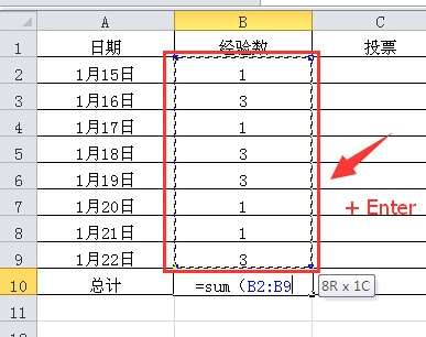 2、然后用鼠标全选需要求和的所有数字,然后再点击【Enter键】。