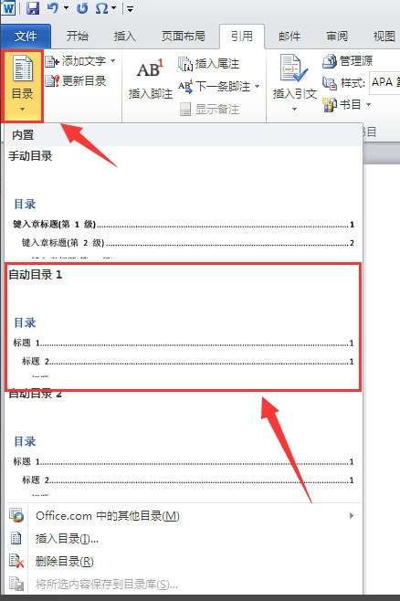 office2010中Word2010怎么自动生成目录