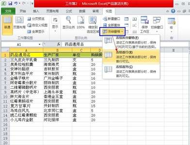 1、使用Excel 2010软件打开您要处理的软件,打开软件后点击菜单栏中的【视图】选项,选择【冻结窗口】然后选择【冻结首行】。