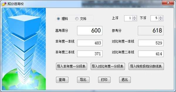 三、输入高考得分,设置上下浮动分数,进行“查询”、“导出”、“打印”等操作。