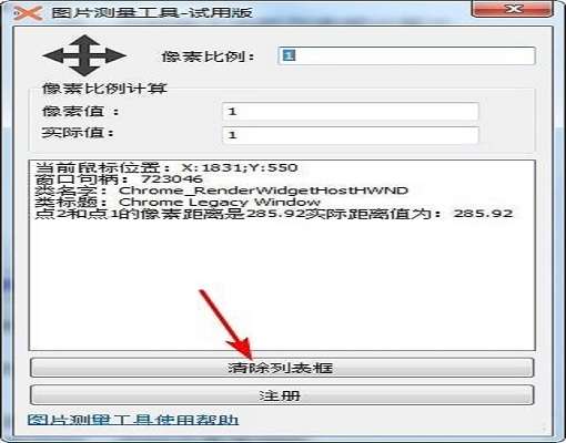7、如果列表框数据满了,可以点击“清除列表框”清空数据。标定的点又从1开始,当然,如果像素比例已标定好,这时还是有效的