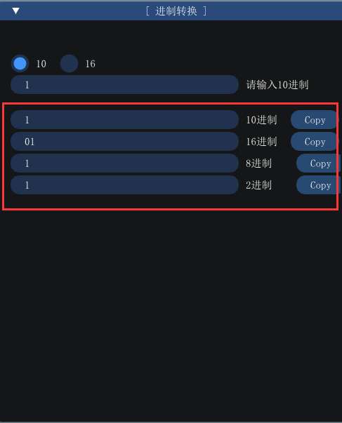 进制转换工具支持转换结果