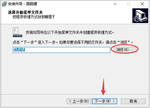 5、这里点击“浏览”可以选择开始菜单文件夹,点击“下一步”