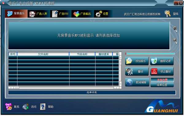 背景音乐与广告人声采样及通道不同自动调整功能。