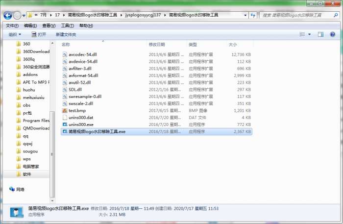2.解压简易视频logo水印移除工具软件,运行“EXE.文件”