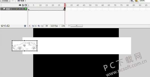 9、这样就完成了一个汽车在跑道上跑过的动画了。