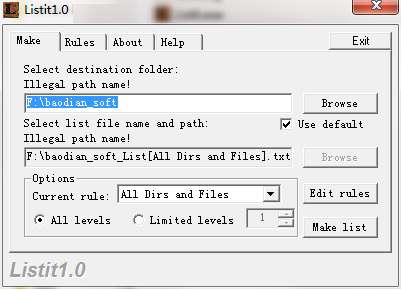 4 该软件的rules功能很实用,比如一张软件光盘,有很多htm,txt,lib等等乱七八糟的文件,而在列表中不希望出现这些,那你只要定义一个包含exe,zip,rar,msi等等的rule,生成的列表就清爽多了。