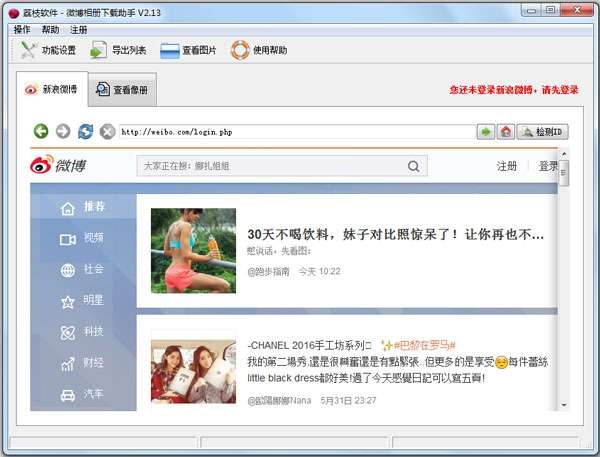 1、自动识别微博ID,不需要手工输入ID。软件集成浏览器功能,可以在浏览新浪微博的过程中,自动识别并列出页面上所有新浪微博ID,方便用户一键下载微博相册。
