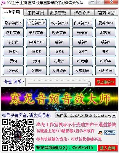 寒龙yy主持语音软件是一款独特新颖实用的语音处理软件,提供了段子笑、宝宝笑、多人笑、群众笑、欢呼、激烈掌声等多种活跃现场氛围的音响效果,可以根据实际输出的音量调整音响音响,支持YY、快手等多种直播平台。