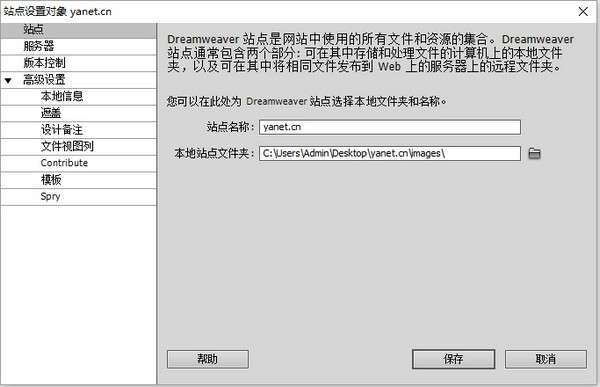 4、你在dreamweaver主界面可以看到出现了本地的站点。这证明你的站点建立完成。你以后的网站文件都会存储在你的这个文件夹下。如图: