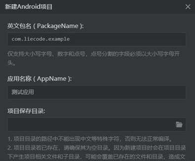 打开 AMixStudio(简称 AMS),点击工具栏的 新建 按钮,弹出 新建Android项目 的对话框。