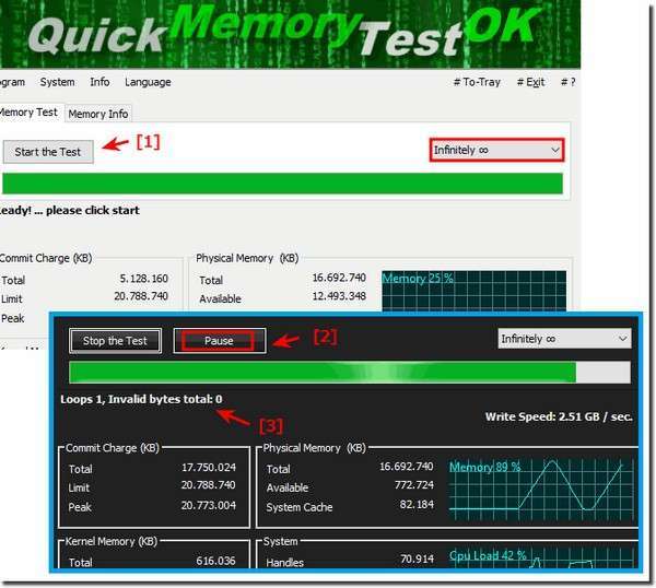 使用“开始测试”按钮开始内存测试,测试开始后,您可以使用相同的