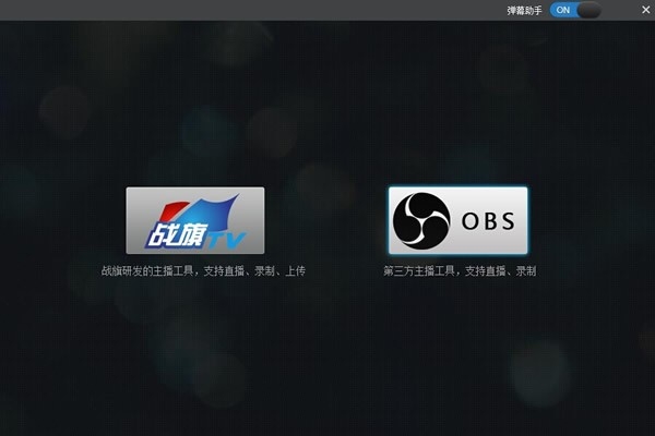 在启动器的中间,有两个程序的启动按钮。可以打开战旗主播工具和OBS。