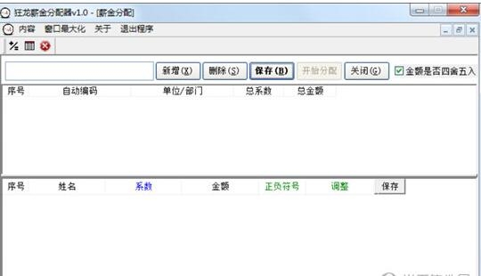狂龙薪金分配器最新版是款界面简洁大方且功能十分丰富的财务管理软件,狂龙薪金分配器最新版可以轻松的帮助用户配置员工的绩效奖金,狂龙薪金分配器可以在软件上设置本次分配的对象,安装部门或者是安装科室分配,将资金输入到软件上,将员工名字输入到软件上,非常实用。
