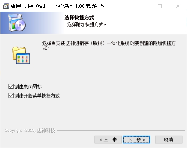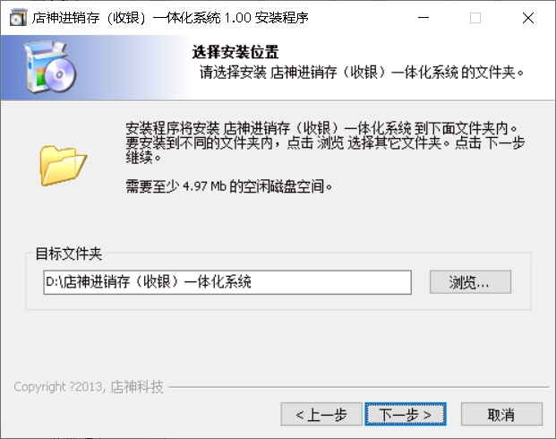 1、双击运行店神超市进销存一体化系统官方版exe安装文件,进入软件安装欢迎界面,点下一步