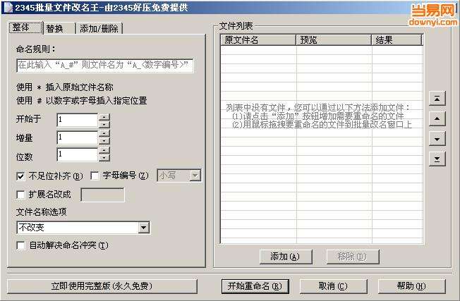 2345批量文件改名王是一款批量文件改名软件,您可以使用数字或字母序列来指定命名规则,替换特定的字符或短语,并将文件特有的信息插入每个新文件名。