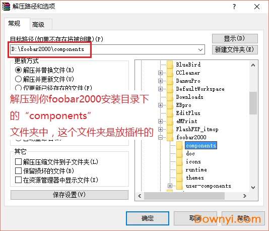 2、解压压缩包“foobar2000apecj_downyi.com.zip”到指定的文件夹: