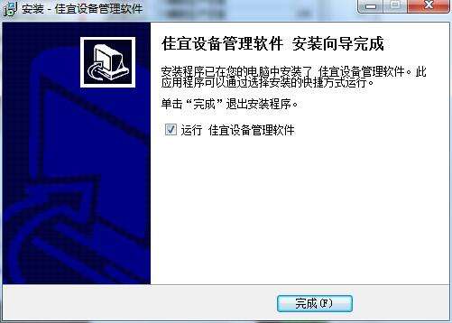 7、下图就是佳宜设备管理软件安装完成的显示界面,点击完成退出就可以了