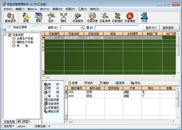 佳宜设备管理软件官方版是款适用于很多行业中的设备信息管理工具。佳宜设备管理软件电脑版增加了一些设备变更、设备维修、设备管理、设备事故等功能,同时增加了对设备配件出入库的管理。佳宜设备管理软件还支持八种管理的方案,支持资料、文档、故障、图片、报表、维修、报废等管理模式。